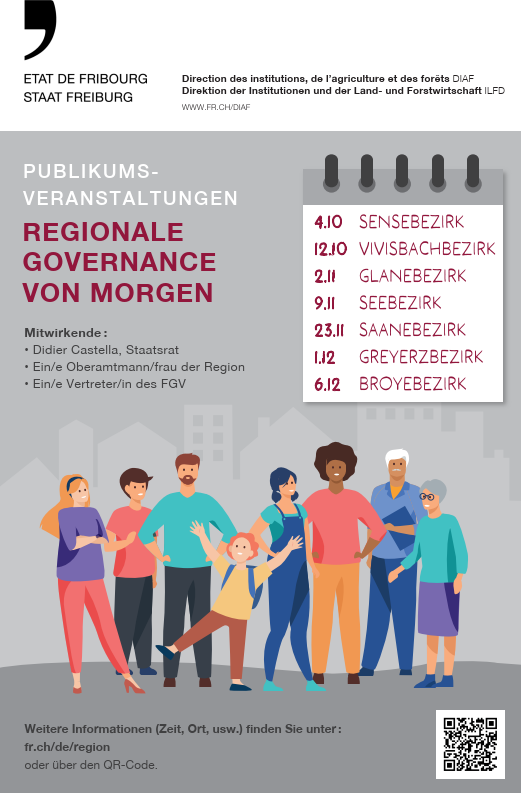 Wie können wir den Regionen unseres Kantons eine harmonische, kohärente und den Erwartungen der Bevölkerung entsprechende Entwicklung garantieren? Welche Institutionen werden in der Lage sein, den Freiburgerinnen und Freiburgern die Lebensqualität zu bieten, die die Stärke unseres Kantons ausmacht? Wie lassen sich die explosionsartige Zunahme der Mobilität und das Bedürfnis nach Bürgernähe miteinander vereinbaren?