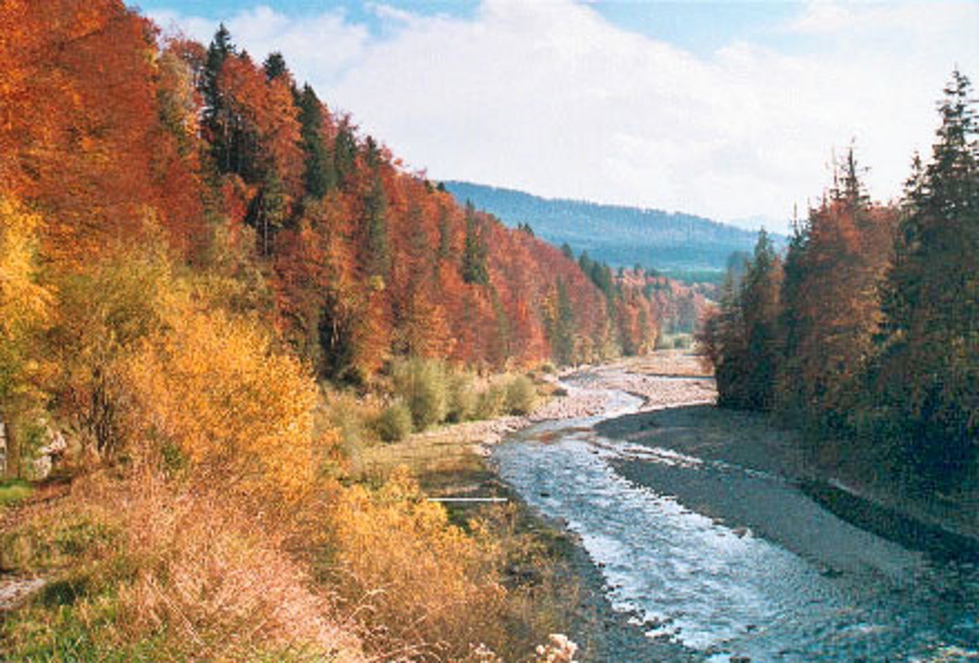 Die Sense gehört zu den letzten intakten Flusssystemen der Schweiz und beherbergt eine Vielzahl von Pflanzen- und Tierarten (links im Bild der Flussuferläufer).
