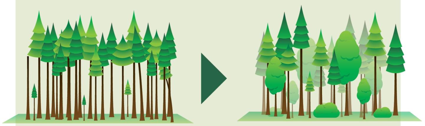 Mit diesem Projekt soll aufgezeigt werden, wie gegenüber klimatischen Störungen anfällige Bestände toleranter und resilienter gemacht werden können. Durch die Entnahme von Fichten werden Lücken geschaffen, damit genügend Licht auf den Boden gelangen kann und sich so eine möglichst grosse Mischung der Baumarten entwickelt. Konkret sollen Fichtenmonokulturen durch natürliche Mischwälder ersetzt werden, mit Baumarten, hauptsächlich Laubbäumen, die auch in Zukunft Bestand haben werden.