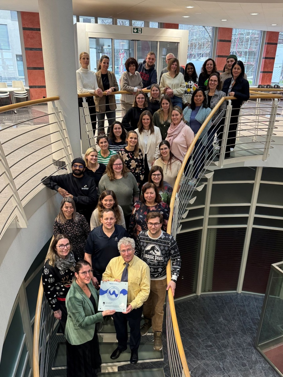 Freiburg, 19. Dezember 2025 – Das Amt für Zivilstand und Einbürgerung (ZEiA) des Kantons Freiburg ist vom Forum für die Zweisprachigkeit erneut mit dem Label für die Zweisprachigkeit ausgezeichnet worden. Diese Anerkennung bestätigt die sprachliche Exzellenz des Amtes sowie seine Vorbildfunktion innerhalb der kantonalen Verwaltung bei der Förderung der französisch-deutschen Zweisprachigkeit. Die offizielle Übergabe des Labels fand im Rahmen des Jahresendapéros in Anwesenheit der Mitarbeitenden und der Dienstleitung statt.
