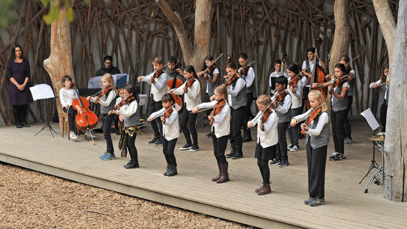 Stücke auswendig spielen und dabei tanzen - so lernen die Schüler/innen nach der von Tina Strinning begründeten «Pädagogik der tanzenden Violinen», technische und rhythmische Blockaden zu lösen, indem sie Spass haben. Die Koordination zwischen Choreographie und Spiel auf dem Instrument, ohne die Stütze der Noten, erfordert von den Teilnehmer/innen ein grosses Engagement und den Einsatz vieler verschiedener Fähigkeiten. Trotz dieser hohen Anforderungen finden die Proben in einer von guter Stimmung und Spielfreude geprägten Atmosphäre statt!Für Fragen zu den Anmeldemodalitäten, zum erforderlichen Niveau, zu den Terminen und Uhrzeiten der Proben und Konzerte sowie zur Aufteilung der Schüler/innen auf die verschiedenen Gruppen oder auch für jegliche andere Anfrage betreffend das Ensemble Staccato stehen Ihnen die verantwortlichen Lehrpersonen gerne zur Verfügung. Kontakt über folgende E-Mail-Adresse: noelie(at)gando.ch