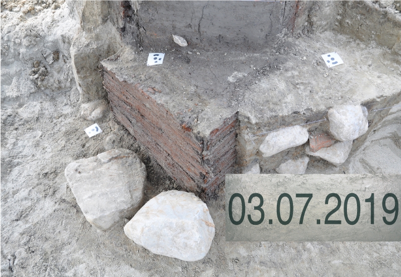 Auf der Grabung in Saint-Aubin/Les Attés kommen die Überreste eines römerzeitlichen Schachts zum Vor-schein, dessen seitliche Holzverkleidung teilweise noch bis in eine Tiefe von zirka 1,3 m erhalten ist. Die vielleicht als Zisterne oder Brunnen anzusprechende Struktur befand sich neben einem 7,6 x 7,3 m grossen, auf massiven Pfosten und in Holz-Erde-Technik errichteten Gebäude. Zu den Befunden dieser Intervention zählen ausserdem ein Brandgrab unbekannter Zeitstellung sowie ein Depotfund in einer Grube, der zwei Pferdeschädel und vollständige Keramikgefässe umfasst. r sous tous ses angles, établir les étapes de sa construction et définir les transformations qu’elle a connues durant 650 ans.