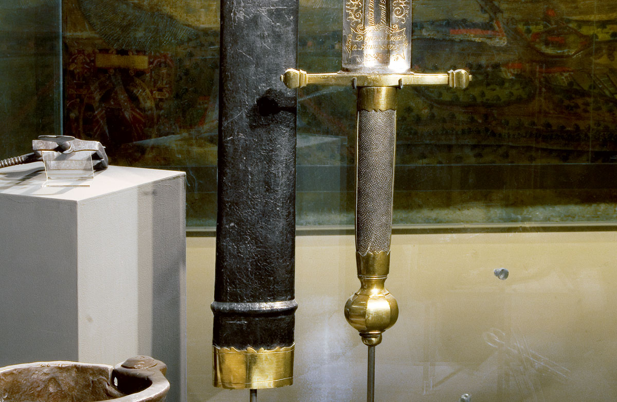 Noch heute trägt der Weibel der Kantonsregierung bei offiziellen Anlässen eine genaue Kopie des Grossweibelstabes; das Original hingegen ist hier ausgestellt, zusammen mit weiteren, zum Teil wohlbekannten Wahrzeichen des Stadtstaates Freiburg. Wenn auch nicht alle diese Zeugen gleichermassen prächtig und bedeutend sind, bilden sie doch zusammen im Herzen des Museums einen eindrücklichen Hort der Erinnerung.
