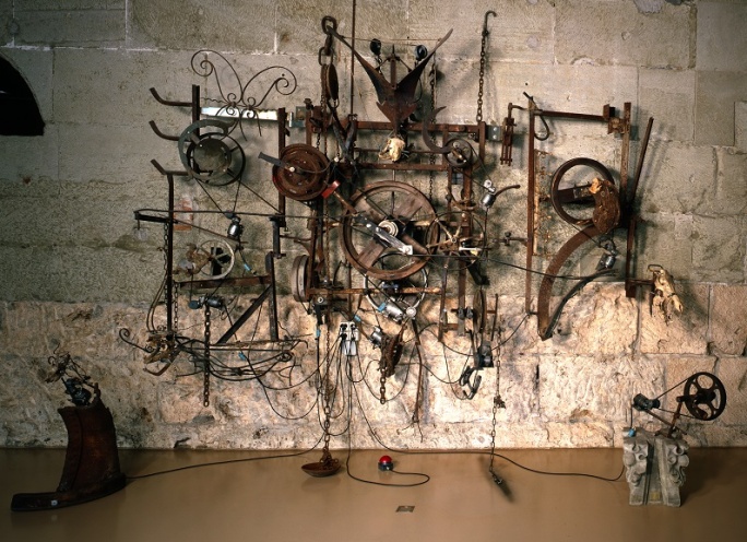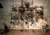 Plätze und Strassen, öffentliche Bauten und Kirchen waren im Mittelalter und in der frühen Neuzeit von Skulpturen geradezu bevölkert. Im Aussenraum oder als fester Bestandteil von Architektur auch im Inneren von Gebäuden waren diese Werke meist aus Stein gehauen. In Freiburg bot der Sandstein Bildhauern einen angenehmen Werkstoff, da er relativ weich und deshalb leicht zu behauen war. Aus dem gleichen Grund wurden die daraus gefertigten Werke im 20. Jahrhundert jedoch auch besonders von Schadstoffen in der Luft und im Regen beeinträchtigt, umso mehr, als man zuvor häufig aus Geschmacksgründen die ursprüngliche Bemalung – auch ein Schutz – entfernt hatte. Deshalb liessen die Denkmalpfleger schon ab 1900 für die ursprünglichen Standorte Kopien der wichtigen noch erhaltenen Skulpturen anfertigen; die Originale wurden ins Museum übergeführt. Ähnlich verfuhr man auch mit Objekten aus dem härteren Neuenburger Kalkstein. Das Lapidarium (Ausstellungsort für Steinskulptur) ist im grossen Saal des ehemaligen Schlachthofs und in drei angrenzenden Nebenräumen eingerichtet. Der höchst eindrückliche Hauptraum wird bestimmt durch die leicht geschweifte Rückwand. Ihre archaische Erscheinung – mächtige, unregelmässige Tuffblöcke – weist darauf hin, dass es sich um die Stadtmauer des 13. Jahrhunderts handelt. Die monumentale Skulpturengruppe vom Westportal der Freiburger Kathedrale, zwölf Apostel mit der Verkündigung an Maria, zieht den Blick der Eintretenden zuerst auf sich. Eine explizit sakrale Thematik eignet überdies dem Kruzifix von Châbles, dem Gnadenstuhl von einem der Freiburger Stadttore oder den Heiligenfiguren. Daneben hatten jedoch auch das Grabmal des Ritters von Düdingen und die grandiose Serie der Freiburger Stadtbrunnen aus dem 16. Jahrhundert religiöse Funktionen: Ihre Gestalten sollten die Menschen im Alltagsleben stets ans Jenseits und an den wahren Glauben (in Freiburg seit dem frühen 16. Jahrhundert die katholische Konfession) erinnern. Der Schöpfer der meisten dieser Brunnen, Hans Gieng, arbeitete indes nicht nur für das katholische Freiburg, sondern auch für das reformierte Bern, wo er ebenfalls eine eindrückliche Reihe von Brunnen schuf. – Sogar bei einem zeitgenössischen Werk, dem «Retable des petites bêtes» von Jean Tinguely, spielen religiöse Aspekte mit. |