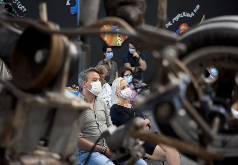 Die beiden Bieler Kunstschaffenden M. S. Bastian und Isabelle L. entwickelten im Laufe ihrer Zusammenarbeit eine unglaublich dichte und fesselnde Kunstform, die dem Comic nahesteht und reich an Personen, Geschichten und Bezügen zu Kunstgeschichte, Popkultur, Literatur und ihren Reisen ist. Ihre Bildwelten erzählen unser Leben: Unter der scheinbaren Sorglosigkeit, die sie ausstrahlen, sind tiefschürfende, manchmal kritische Reflexionen über das urbane Leben und unsere Verbundenheit mit Natur und Mitmenschen zu entdecken.