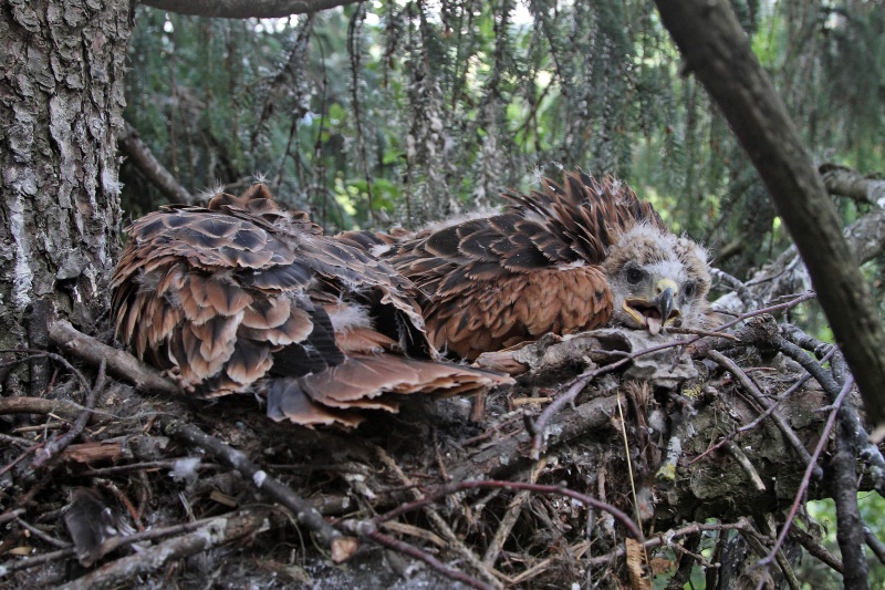 Nach Erhalt sämtlicher erforderlicher Bewilligungen wurden im Juni 2023 aus acht Nestern, die alle zwei Junge enthielten, jeweils ein Nestling entnommen und in die Wildtiere-Pflegestation Rita Roux gebracht. Hier wurden sie bis zum Abreisedatum vom Pflegepersonal des Museums fachmännisch gefüttert.