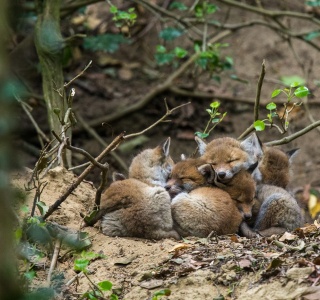 Nach der Paarung mitten im Winter hat die Füchsin ihre Jungen während fünfzig Tagen ausgetragen und sie dann in einem alten Dachsbau zur Welt gebracht. Fünf hungrige Mäuler muss sie nun ernähren. Dafür jagt sie Wald- und Wühlmäuse und andere Kleintiere, ob behaart oder gefiedert. Mit neun Wochen sind die Fuchswelpen entwöhnt und verbringen den Sommer im Gefolge ihrer Mutter, bevor sie im Herbst selbstständig werden. Wer das Glück hat, einer Fuchsfamilie zu begegnen, sollte sie unbedingt aus respektvoller Distanz bewundern!