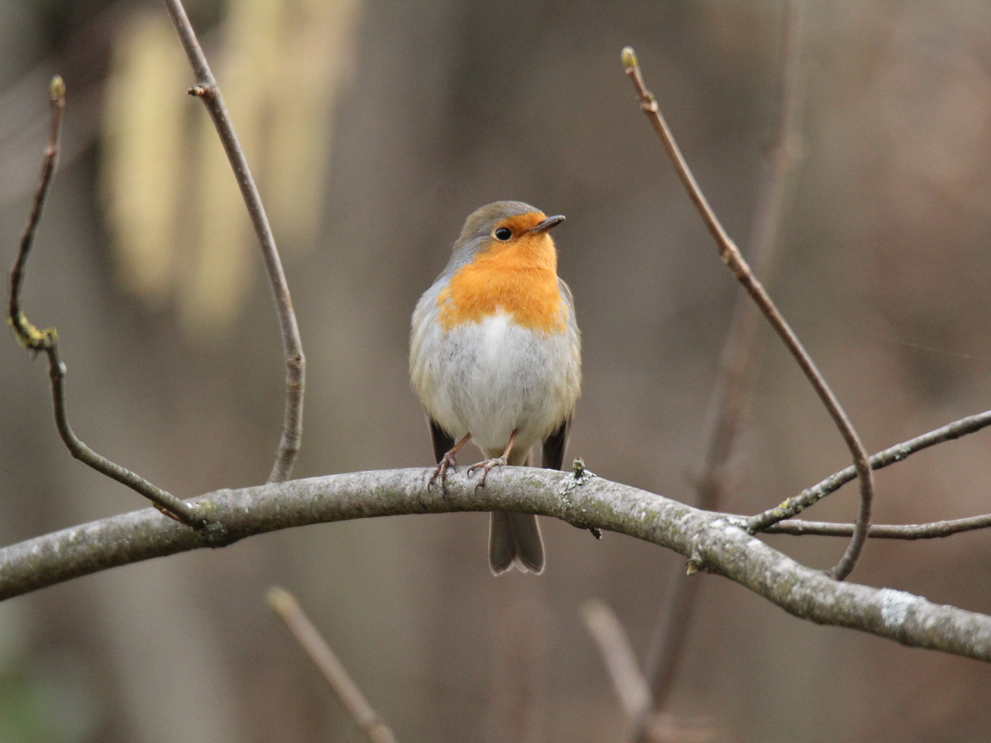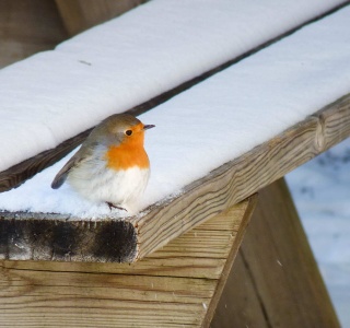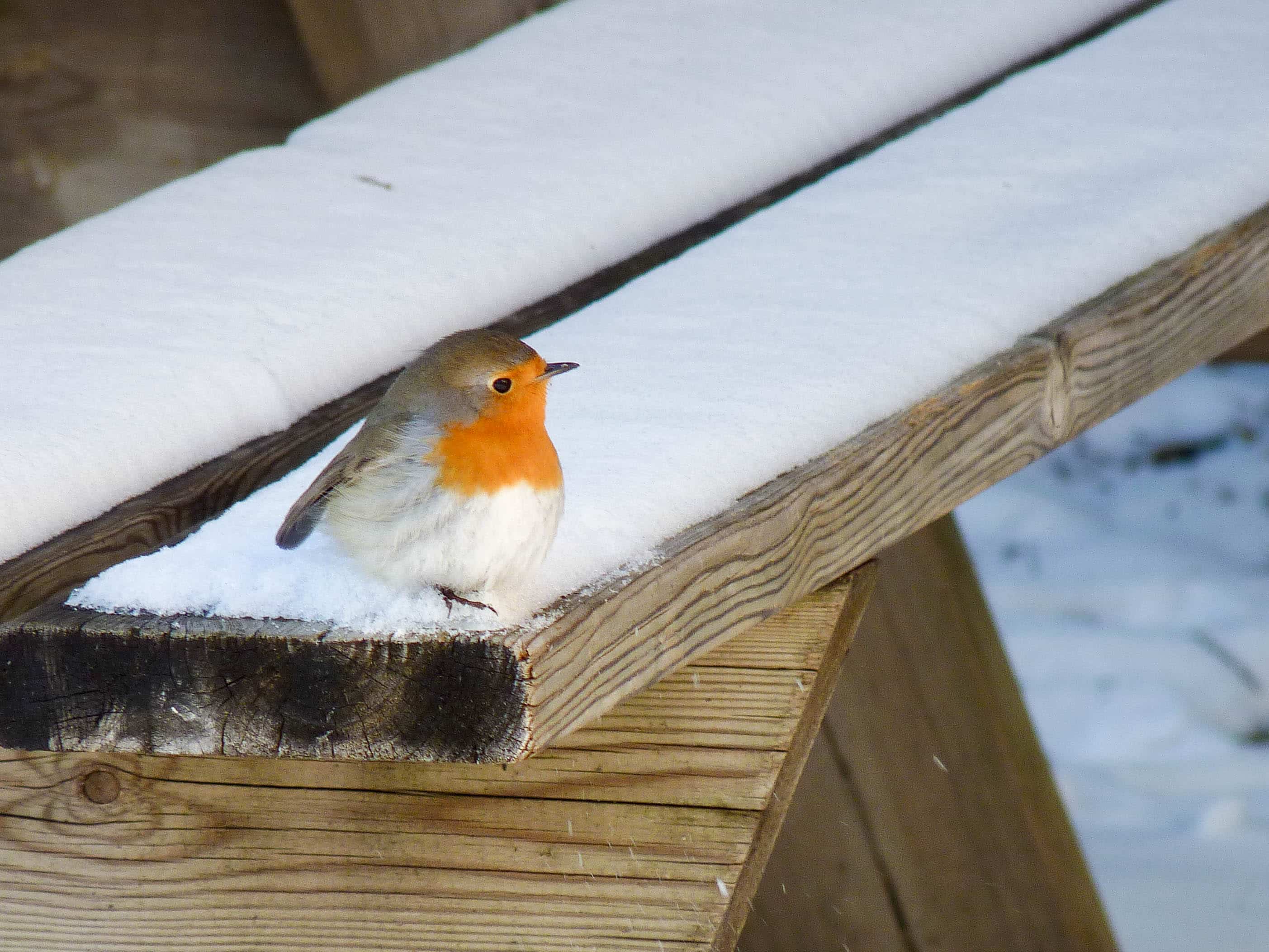Die Sträucher in meinem Garten haben ihr grünes Kleid gegen einen Wintermantel aus Schnee eingetauscht. Die roten Beeren des Gewöhnlichen Schneeballs leuchten im unberührten Weiss. Ich sitze auf einem kahlen Haselstrauch und singe, um mein Territorium zu verteidigen. Das ist wichtig, denn die Konkurrenz ist hart! Wenn ich den ganzen Winter über genug zu fressen haben will, muss ich die anderen Rotkehlchen unbedingt vertreiben.