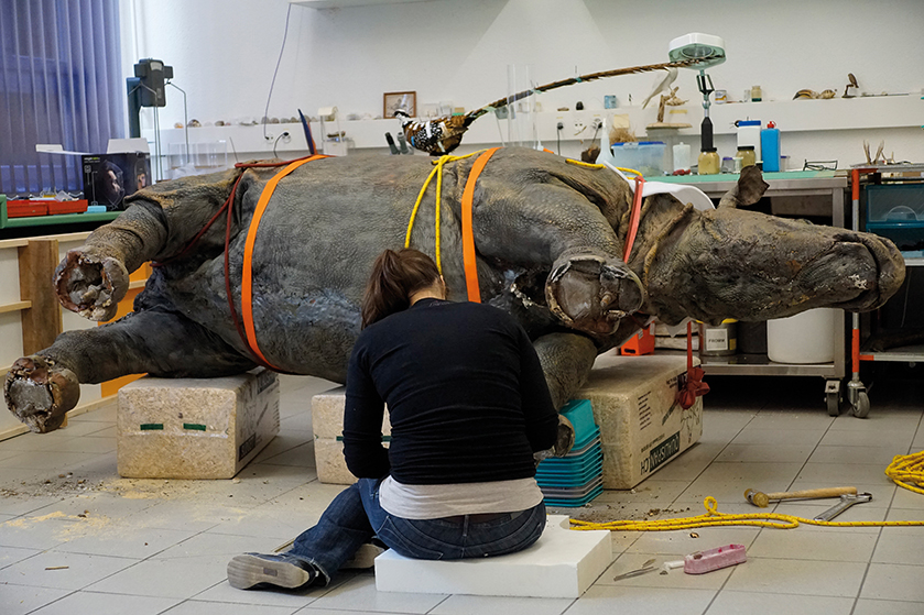 Der historische Wert dieses Objekts ist unbestritten. Als eine von fünf noch lebenden Nashornarten ist das Indische Panzernashorn stark von Wilderern bedroht und wäre zu Beginn des 20. Jahrhunderts beinahe ausgestorben. Dank grosser Bemühungen zur Erhaltung der Art ist der Bestand heute zum Glück wieder stabiler. Dennoch bleiben präparierte Tiere wie das des NHMF wichtige Zeitzeugen. So erzählt unser Nashorn davon, wie Naturforscher Ende des 19. Jahrhunderts wilde Tiere wahrgenommen haben, welche Präparationsmethoden damals üblich waren und wie die koloniale Vergangenheit Indiens ausgesehen hat. Neue wissenschaftliche Methoden, speziell im Bereich der Genetik, machen Naturhistorische Museen mit ihren Sammlungen mehr denn je zu wichtigen Hütern dieser Zeugen der Vergangenheit.