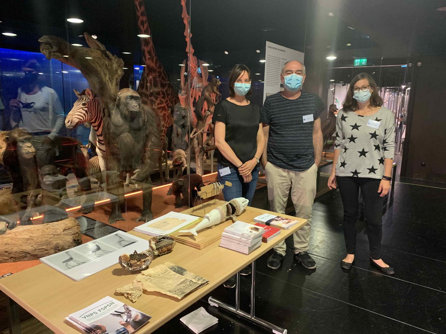 Vertreterinnen und Vertreter des Verbands Naturwissenschaftliche Präparation Schweiz (VNPS) haben während der Denkmaltage die Besucherinnen und Besucher des Museums in Empfang genommen: die Restauratorin Evelyne Rotzetta, die das Indische Panzernashorn des NHMF für die Ausstellung «Rhinostar» 2017–2018 restauriert hat; die Tierpräparatorin Sirpa Kurz, Mitarbeiterin des Zoologischen Museums der Universität Zürich; die selbständige Tierpräparatorin Sabrina Beutler aus Düdingen; sowie schliesslich Boris Baeriswyl, Tierpräparator des NHMF. Dank ihnen haben die Besucherinnen und Besucher einzigartige und überraschende Einblicke in das Innenleben der eindrücklichen Tierpräparate des NHMF erhalten.
