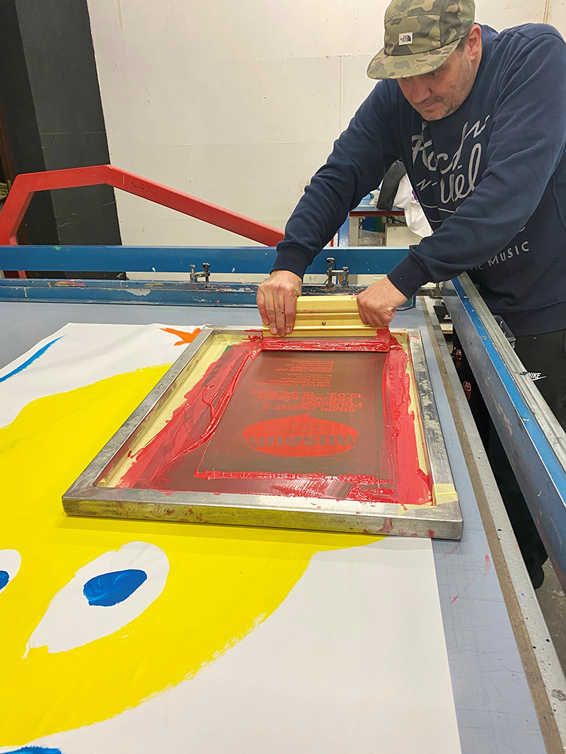Jedes Plakat, von Hand gemalt und im Siebdruckverfahren hergestellt, ist ein Unikat. Ab dem 13. März werden die Plakate Farbe in die Strassen der Stadt Freiburg und an die Mauern des Museums bringen.