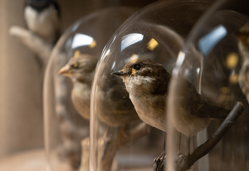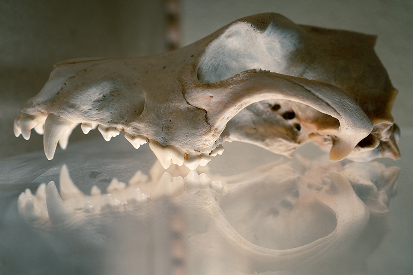 Verschiedene Tierpräparate, Schädel und Häute stehen zur Verfügung.