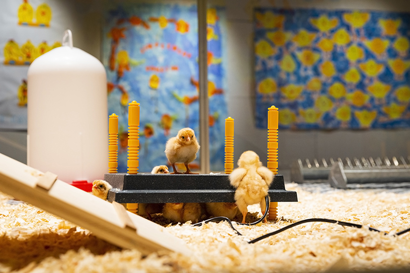 Auch die Schaubrutkästen fehlen nicht. Dort können die Besucherinnen und Besucher zuschauen, wie die Küken mit ihren kleinen Schnäbeln die Eierschalen durchbrechen und wie sie sich aus ihrem Ei kämpfen.