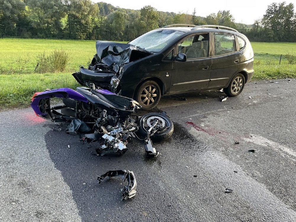Am Freitag, den 20. September 2024, gegen 1755 Uhr, wurde die Freiburger Kantonspolizei darüber informiert, dass sich in Chandon ein erster Verkehrsunfall zwischen einem Motorrad und einem Auto ereignet hatte.