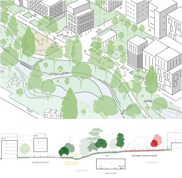 Koexistenzen, ein Raum zwischen Stadt und Landwirtschaft. Hier finden Sie die detaillierten Vorschläge des Teams L’AUC.