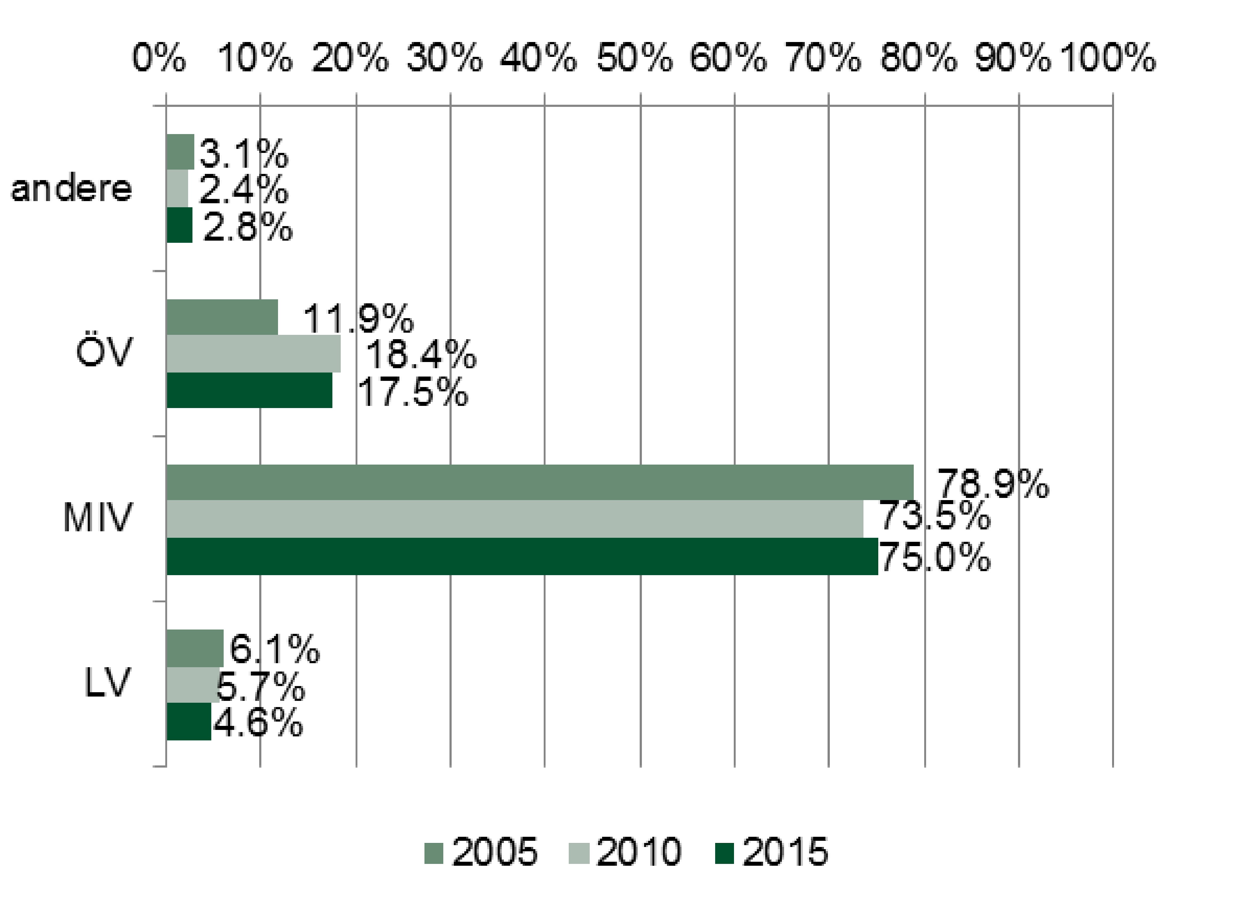 - Der Anteil des öffentlichen Verkehrs stagniert seit 2010