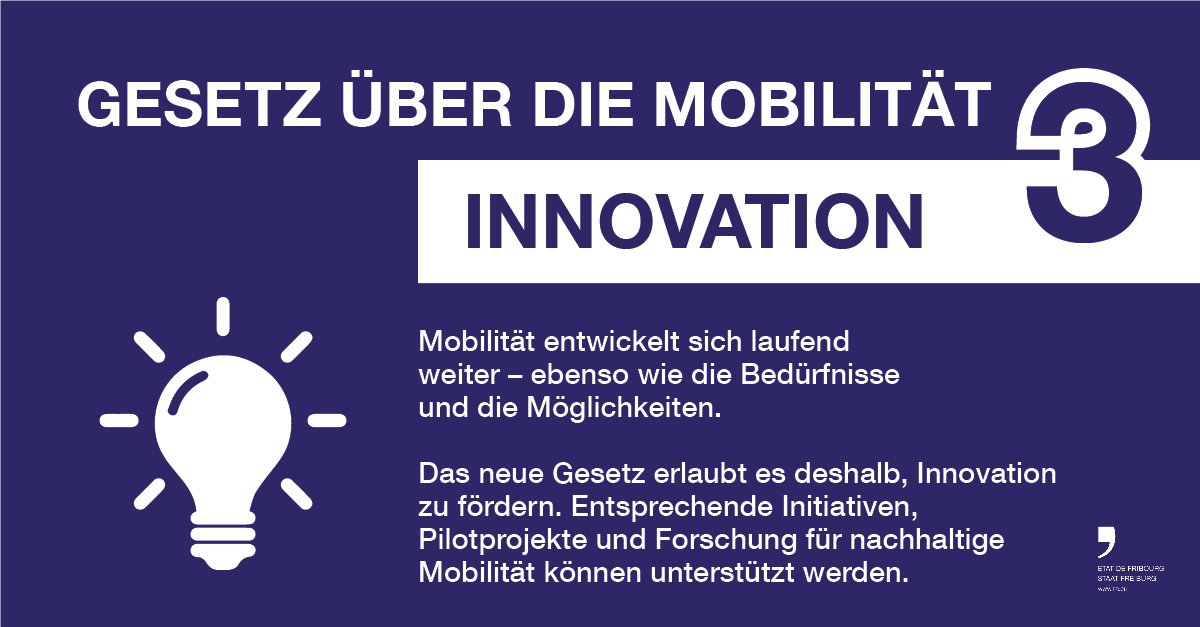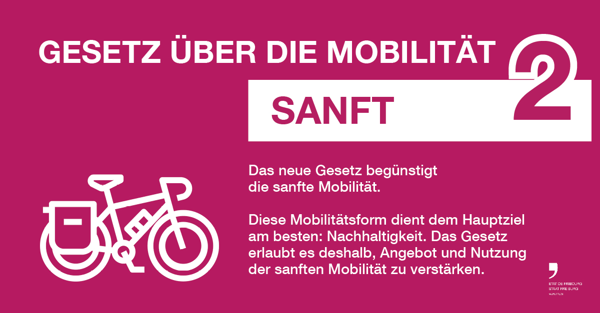 Das neue Gesetz soll insbesondere die nachhaltige Mobilität fördern – ganz im Sinne von Artikel 3 der Freiburger Kantonsverfassung, wonach die nachhaltige Entwicklung eines der Ziele des Staates ist, das in allen Bereichen zu verfolgen ist. Der Vorentwurf des Gesetzes trägt deshalb auch den Klimazielen von Bund und Kanton Rechnung, wonach die Schweiz den CO2-Ausstoss bis 2030 halbieren und bis 2050 auf null reduzieren soll.