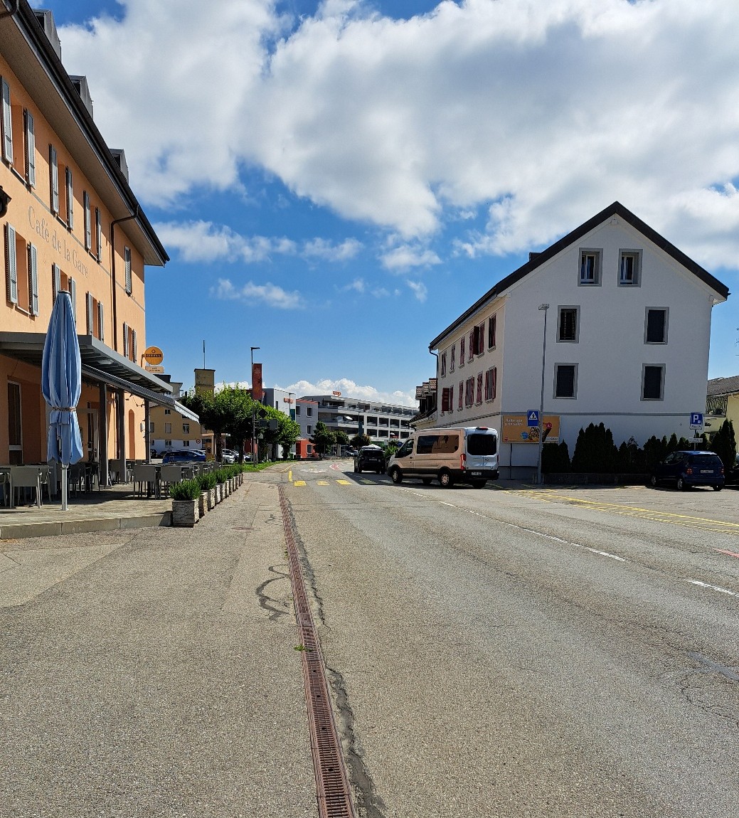 Die Arbeiten betreffen einen rund 750 Meter langen Abschnitt zwischen dem Bahnübergang beim Bahnhof und der Brücke über den Russon. Ziel ist es, die Einhaltung der Tempolimiten zu verbessern und die Sicherheit aller Verkehrsteilnehmenden – insbesondere der Personen, die zu Fuss oder mit dem Velo unterwegs sind – zu erhöhen.