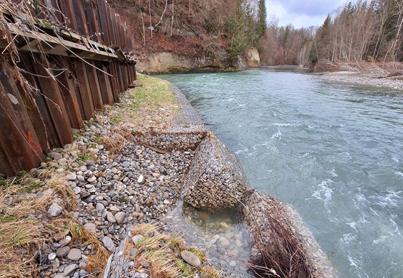 Nur der Bereich ausserhalb der Spundwände mit der zuvor sanierten Uferböschung erlitt Schäden, weil drei Steinkörbe umkippten, was aber die Stabilität des Bauwerks nicht beeinträchtigte. Die Instandstellungsarbeiten am Ufer werden im Frühjahr stattfinden.