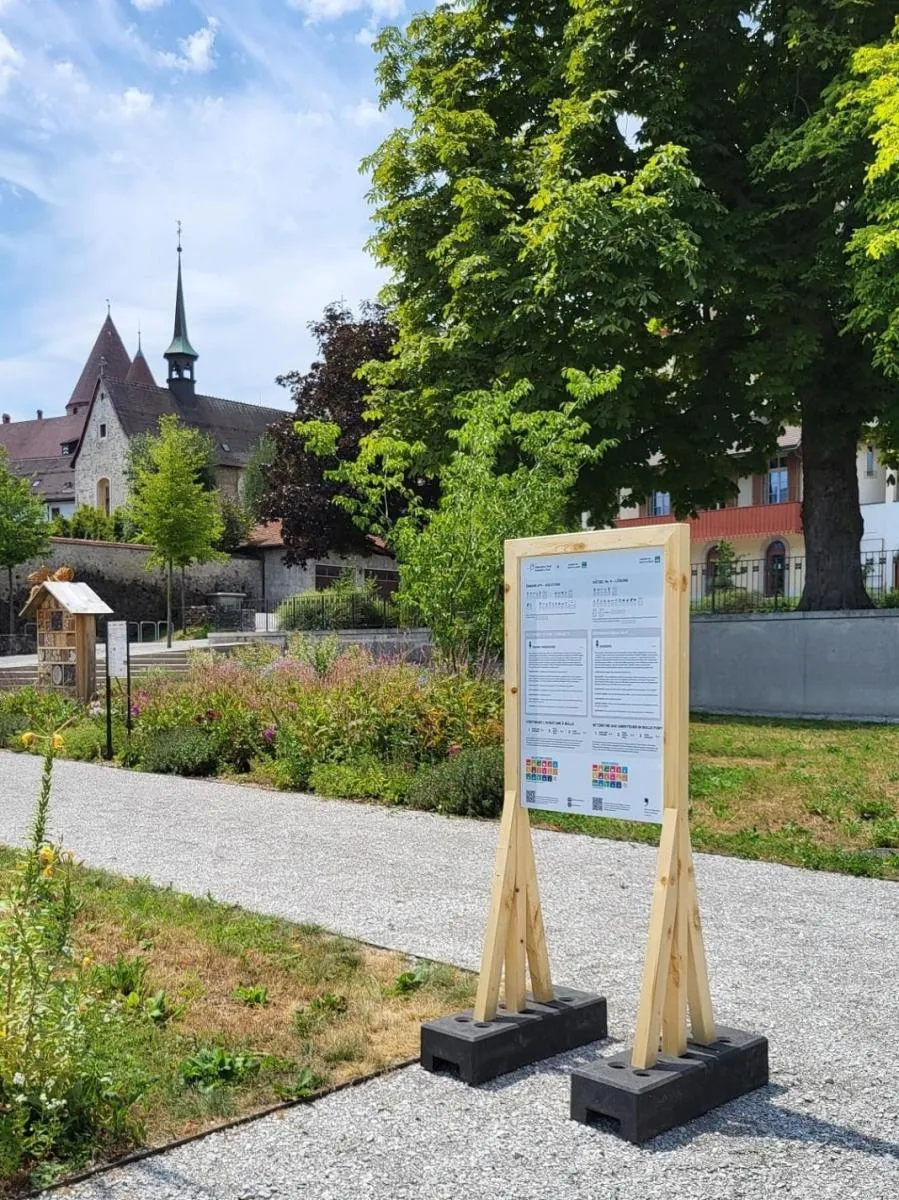 Anlässlich des Spiels Rätseltour, das vom Büro für Nachhaltigkeit des Staates Freiburg angeboten wurde, wurden hölzerne Plakatständer geschaffen. Da dieses Spiel fertig ist, werden die Plakatständer nicht mehr genutzt. Damit sie wiederverwendet werden, können sie nun ausgeliehen werden (Transportkosten / Aufstellen zu Ihren Lasten).