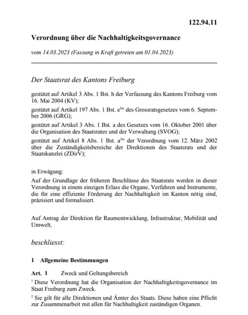 Das Büro für Nachhaltigkeit wurde gegründet, und die Verordnung über die Nachhaltigkeitsgovernance wurde vom Staatsrat verabschiedet.