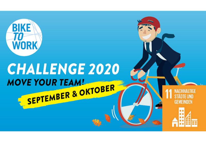 Die 16. Ausgabe von Bike to Work , die ursprünglich für Mai und Juni 2020 geplant war, wurde aufgrund des Coronavirus auf September und Oktober 2020 verschoben. Bike to Work ist eine nationale Aktion des Dachverbands Pro Velo Schweiz , an der rund 2200 Betriebe teilnehmen. Das Ziel von Bike to Work ist, den Langsamverkehr und die Gesundheit der Mitarbeitenden zu fördern. Die Mitarbeitenden der angemeldeten Betriebe bilden Teams mit 4 Personen und legen ihren Arbeitsweg an möglichst vielen Tagen mit dem Velo zurück. Ein Mitglied pro Team kann zu Fuss mitmachen (Teilnehmende mit Inline-Skates oder Trottinett sind ebenfalls willkommen). Die zurückgelegten Kilometer werden im Kalender der Aktion eingetragen. Bei einer Verlosung können die Teilnehmerinnen und Teilnehmer zahlreiche Preise gewinnen, z. B. einen Gutschein für das Ausleihen von E- Mountainbikes oder für Velo-Karten.