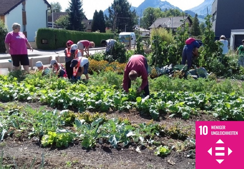 Den sozialen Zusammenhalt fördern und die Gesundheit unterstützen, während Tomaten zum Reifen gebracht und Karotten geerntet werden? Darum geht es bei Couleur Jardin , ein umwelt- und menschenfreundliches Projekt, das vom Freiburgischen Roten Kreuz im Auftrag der Direktion für Gesundheit und Soziales (GSD) geführt wird. Das Prinzip: Einmal pro Woche treffen sich Interessierte im Garten, um zusammen zu gärtnern, sich auszutauschen, zu plaudern, einen Snack zu teilen und an einem Workshop zu Gesundheitsthemen teilzunehmen. Es ist auch eine Gelegenheit für die Durchmischung von Generationen und Horizonten, indem beispielsweise Bewohnerinnen und Bewohner von Pflegeheimen und Asylbewerberheimen, Kinder aus Schulen und Kindergärten und/oder Einwohnerinnen und Einwohner der Gemeinde eingeladen werden, an einem gemeinsamen Projekt teilzunehmen.