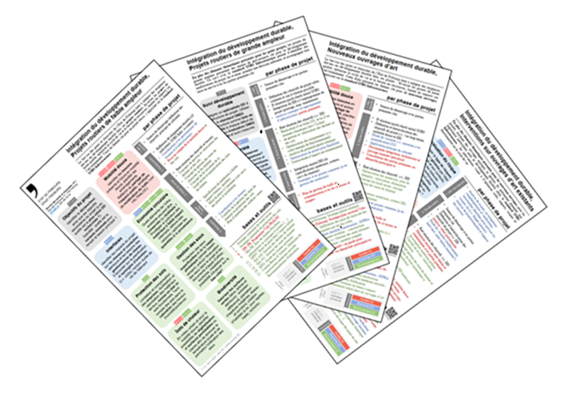 Vier Merkblätter zur Unterstützung der Integration der Nachhaltigkeit in Strassenbauprojekte stehen je nach Projekttyp zur Verfügung :