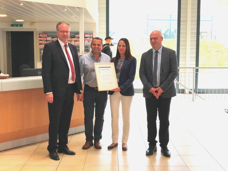 Nachdem die letzten Auszeichnungen an Preisträger aus den Bezirken Greyerz, Sense und See gingen, erhält nun ein Arbeitgeber aus dem Saanebezirk den Preis Migration und Arbeit: die Garage de l’Autoroute J.-F. Lacilla SA, die seit 1997 in Matran beheimatet ist. Jean-François und Corinne Lacilla wurde der Preis heute Freitagmorgen vom Präsidenten der KMR, dem Oberamtmann des Greyerzbezirks Patrice Borcard, überreicht. Der Zeremonie wohnten Staatsrat Maurice Ropraz, Sicherheits- und Justizdirektor, der Oberamtmann des Saanebezirks Carl-Alex Ridoré und die Gemeindebehörden bei.