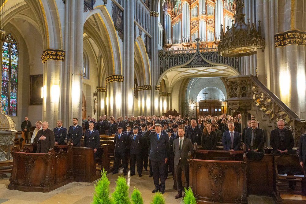 Am Freitag, den 16. Dezember 2022, haben in der St. Nikolaus-Kathedrale in Freiburg 22 Polizistinnen und Polizisten in Ausbildung (PiA), darunter 17 Gendarmen und 5 Inspektorinnen und Inspektoren, in Anwesenheit der politischen, gerichtlichen und religiösen Behörden des Kantons, einer Militärdelegation sowie ihrer Familien, den Eid abgelegt. Es handelt sich um den allerersten Jahrgang von Polizistinnen und Polizisten in Ausbildung, der nach zweijähriger Ausbildung nach dem neuen Konzept, das seit Januar 2021 in Kraft ist, den eidgenössischen Fachausweis erfolgreich bestanden hat.