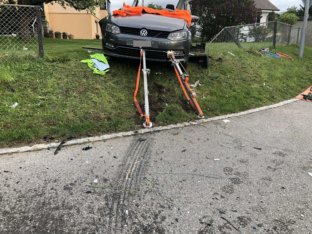 Am Sonntag, 3. Mai 2020, gegen 1800 Uhr schickte die Kantonspolizei mehrere Polizeipatrouillen an einen Verkehrsunfallort mit mehreren Verletzten, der sich kurz zuvor in der Ortschaft Farvagny ereignet hatte. Vor Ort stellte die Polizei fest, dass ein 19-jähriger Autofahrer, der auf der Route du Bugnon in Farvagny unterwegs war, einem 31-jährigen Autofahrer, der normal auf der Kantonsstrasse von Farvagny in Richtung Rossens unterwegs war, beim Abbiegen an der Kreuzung auf die Kantonsstrasse den Vortritt verweigerte. Infolge des Aufpralls wurde der Wagen ausserhalb der Fahrbahn an einen Abhang geschleudert und die verletzte Beifahrerin wurde im Auto eingeklemmt. Auf Anfrage der Rettungssanitäter wurde ein Rega-Helikopter angefordert. Der Feuersehrstützpunkt Freiburg und die Feuerwehr Gibloux (insgesamt 16 Mann) standen im Einsatz. Sie stabilisierten zunächst das Fahrzeug und befreiten dann die verunglückte Frau. Die 21-jährige Beifahrerin wurde per Helikopter in ein Krankenhaus transportiert. Die beiden leicht verletzten Fahrer wurden vor Ort von den Rettungssanitätern untersucht. Die intervenierenden Feuerwehrleute haben die Fahrbahn wiederinstandgesetzt. Die in den Unfall verwickelten Autos wurden von der Pikett-Garage abgeschleppt.