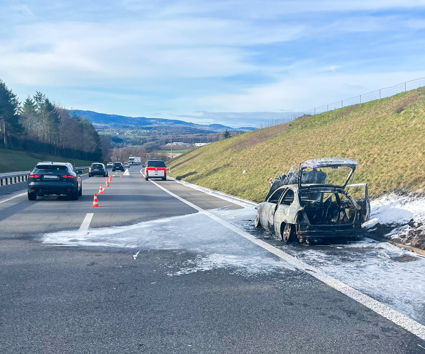 Heute Morgen, 13. März 2023, kurz vor 8 Uhr, wurden die Feuerwehr des Ausrückstandortes Freiburg und die Kantonspolizei wegen des Brandes eines Autos auf der A12, zwischen Freiburg und Matran, Gemeinde Corminboeuf, alarmiert.
