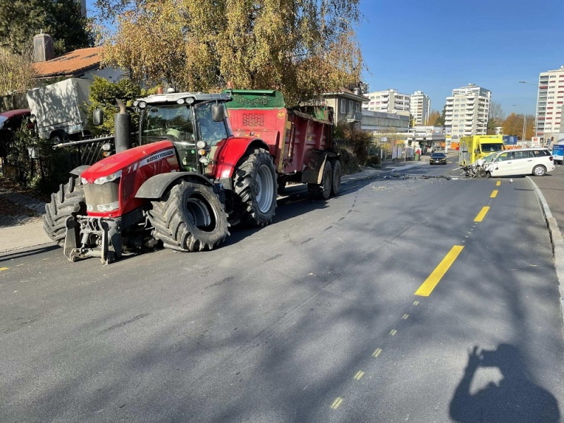 Es wurde festgestellt, dass eine 46-jährige Automobilistin auf der Route de la Glâne in Freiburg in Richtung Stadtzentrum unterwegs war. Zu einem bestimmten Zeitpunkt geriet sie nach links und prallte frontal mit einem landwirtschaftlichen Traktor zusammen, der normal auf seiner Fahrspur unterwegs war. Infolge des heftigen Zusammenstosses kam das Auto schliesslich mitten auf der Fahrbahn zum Stehen.