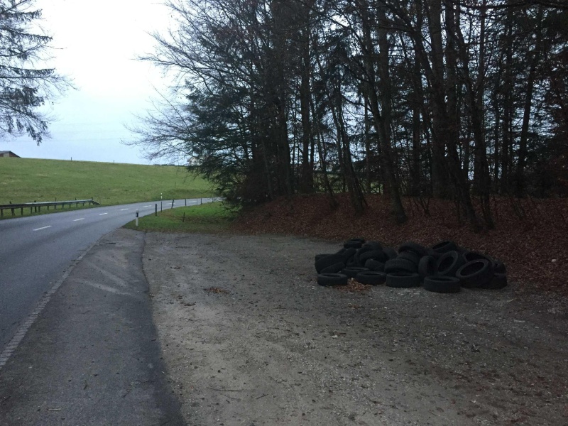 Seit dem 12. Dezember 2019, wurden in mehreren Gemeinden im Sensebezirk rund 150 Altreifen illegal entsorgt. Die Polizei sucht Hinweise.