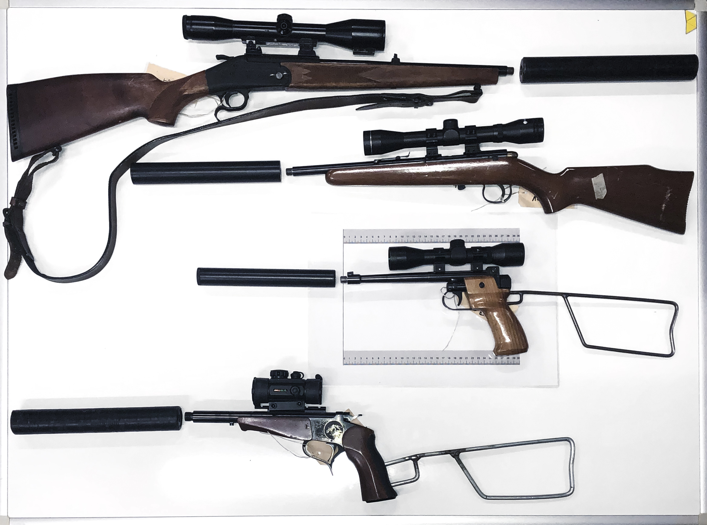 Etwa zwanzig dieser Waffen, die hauptsächlich bei einem Protagonisten beschlagnahmt worden sind, wiesen von der Gesetzgebung verbotene Änderungen auf. Mehrere verbotene Bestandteile (Schalldämpfer, Nachtsichtzielgeräte …), die zum Gebrauch mit diesen Waffen kompatibel sind, wurden während der Hausdurchsuchungen ebenfalls aufgefunden und beschlagnahmt.