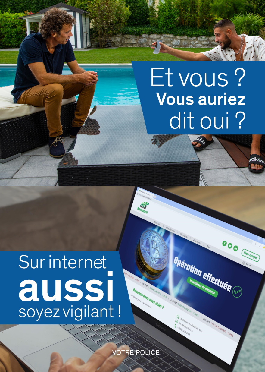 Die kantonalen, regionalen und kommunalen Polizeikorps der Schweiz und die SKP haben 2019 eine nationale Präventionskampagne lanciert, um die Bevölkerung für die möglichen Gefahren im Zusammenhang mit der Nutzung des Internets zu sensibilisieren. Dabei wurden drei rund einminütige Videoclips veröffentlicht, die Betrugsdelikten auf Kleinanzeigen-Plattformen, dem Liebesbetrug im Internet und den Money Mules gewidmet waren und über die Medien und die sozialen Netzwerke verbreitet wurden. 2020 standen drei weitere Themen im Fokus: Sextortion, betrügerische Support-Anrufe und Grooming.
