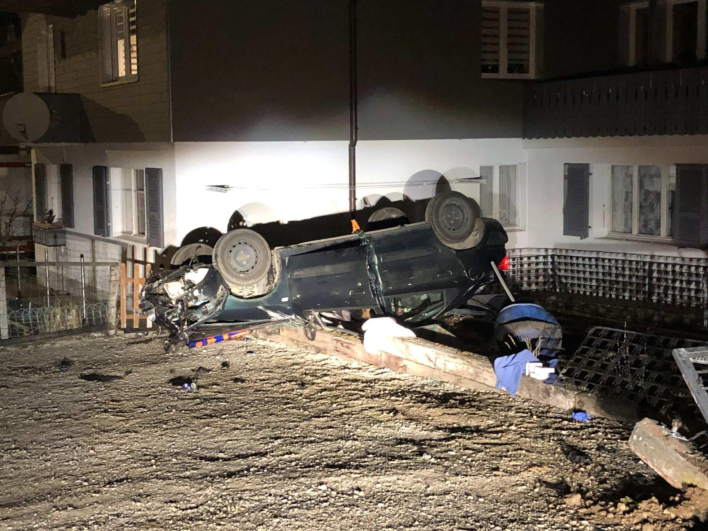 Am Sonntag, 15. März 2020, gegen 18:45 Uhr, wurde die Kantonspolizei über einen Verkehrsunfall informiert, der sich in Zollhaus ereignet hatte. Eine 42-jährige Automobilistin war von Schwarzsee in Richtung Plaffeien unterwegs. In einer leichten Linkskurve verlor sie aus einem unbekannten Grund die Herrschaft über ihr Fahrzeug, rammte zwei Betonpfeiler und beendete ihre Fahrt auf dem Autodach im Garten eines Wohnhauses.