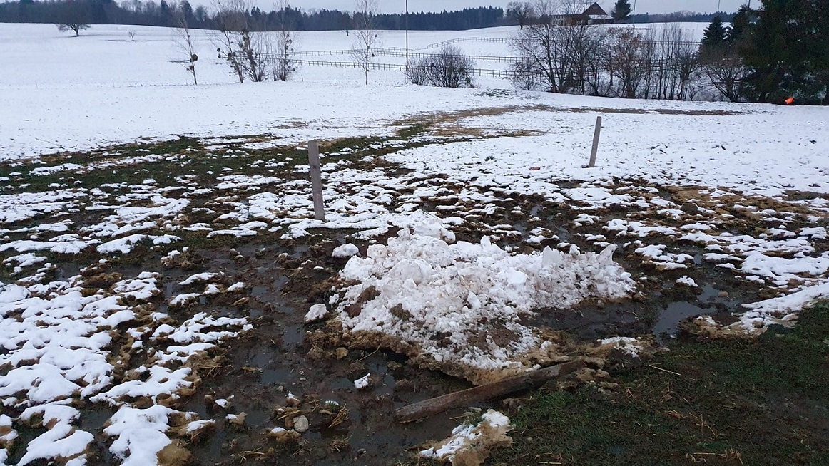 Vor Ort stellten eine Polizeipatrouille und ein Wildhüter fest, dass mehrere tausend Liter Gülle aus einer landwirtschaftlichen Anlage übergelaufen waren, sich über ein Feld ergossen und in einen Bach gelangten.