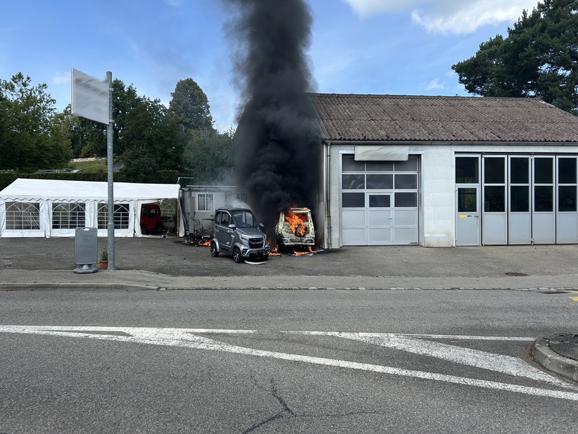 Die Feuerwehr See-Lac konnte das Feuer schnell unter Kontrolle bringen und das benachbarte Gebäude schützen. Allerdings wurden drei weitere Fahrzeuge und die Fassade des Gebäudes durch die Hitze beschädigt.