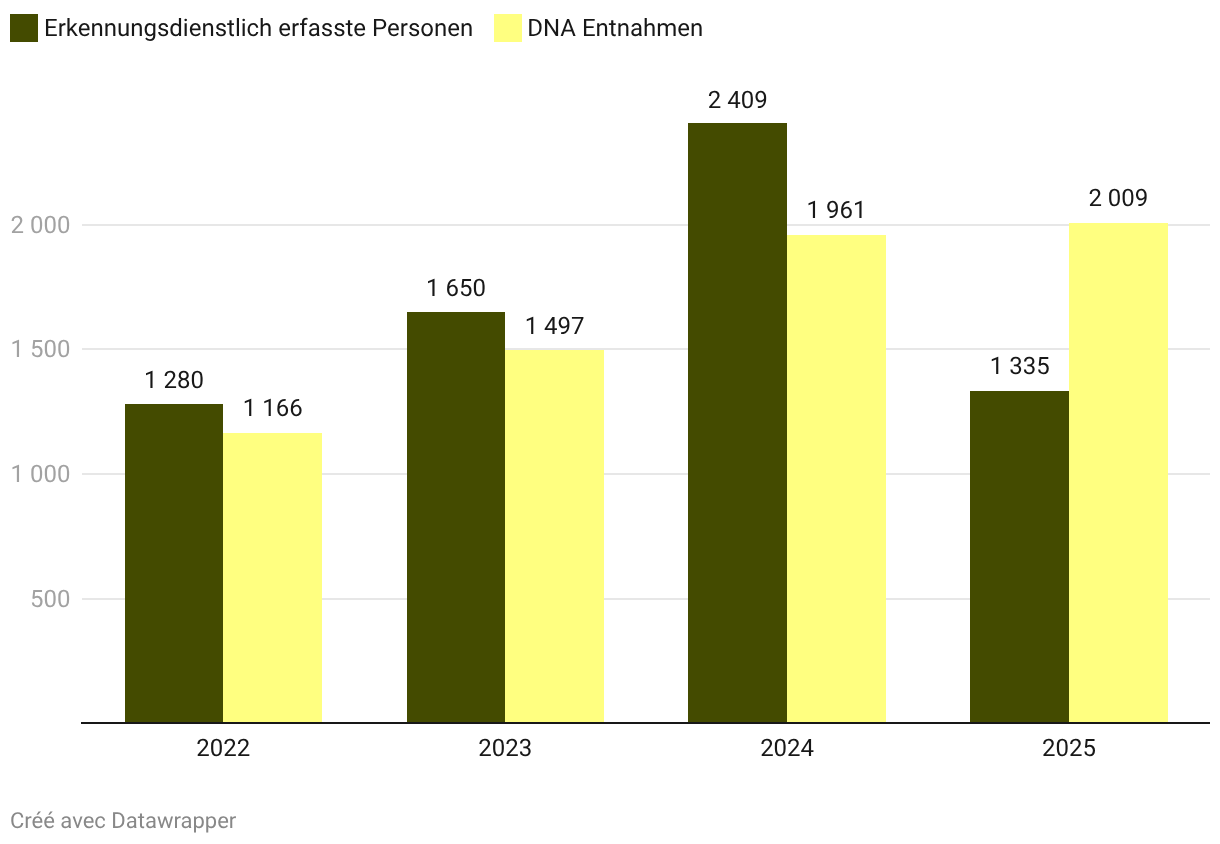 Die Kantonspolizei führte im Jahr 2025 insgesamt 46 Rückführungsfeinsätze durch, was einem Rückgang von 35 % gegenüber 2024 entspricht. Insgesamt wurden 66 Personen zurückgeführt (-42 % im Vergleich zu 2024), verteilt auf 26 Linienflüge, 9 Sonderflüge und 11 Bodenrückführungen.