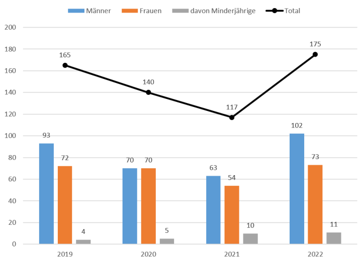 | Strafanträge | 506 | 570 | 805 | 982 | 22 % |