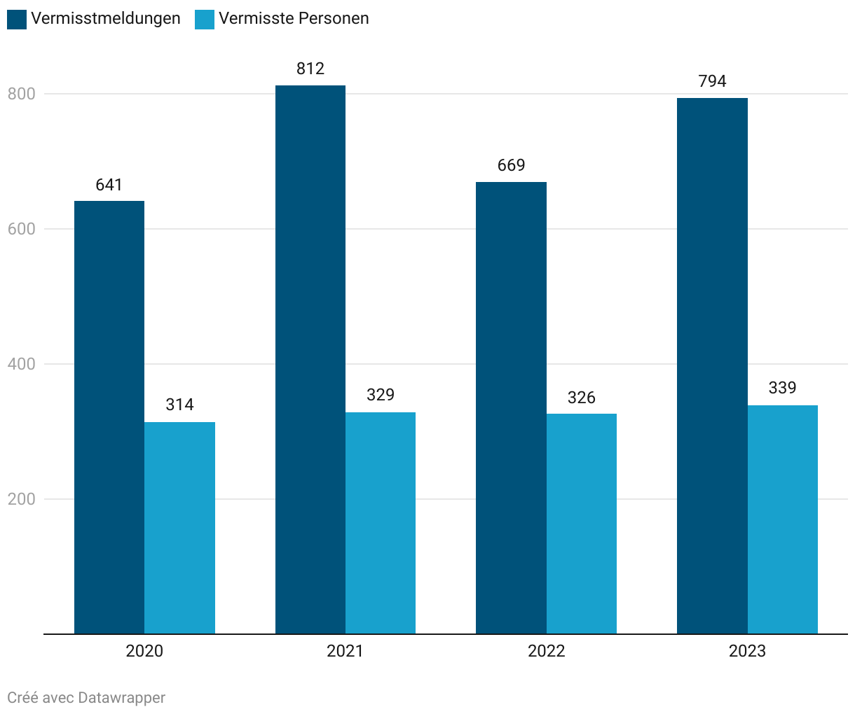 | Vermisstmeldungen | 641 | 812 | 669 | 794 | 19 % |