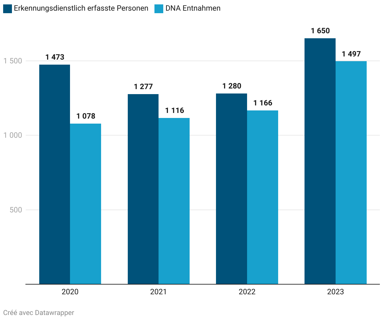Die Anzahl Ereignisse mit Beteiligung von Asylsuchenden hat stark zugenommen (1’330 gegenüber 506 im Jahr 2022). Die Polizei hat 341 vorläufige Festnahmen vorgenommen und die Staatsanwaltschaft hat 73 Inhaftierungen angeordnet. Bei den festgestellten Delikten handelte es sich hauptsächlich um illegale Aufenthalte (642), Nichteinhaltungen des Perimeterverbots (280), Diebstähle in Fahrzeugen (221), Ladendiebstähle (176) und Störung der öffentlichen Ordnung (84).