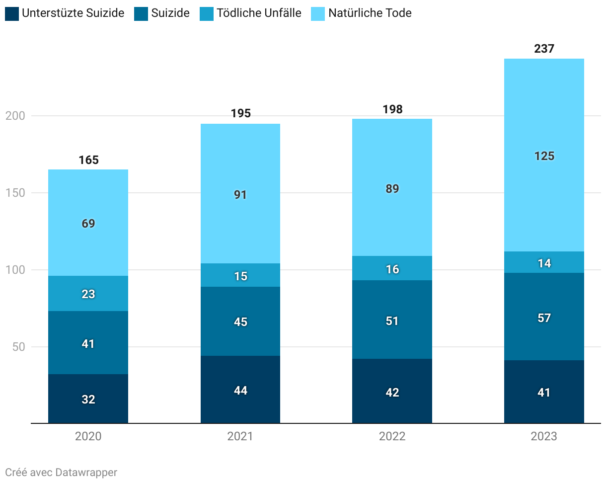 | Leichenhebungen | 165 | 195 | 198 | 237 | 20 % |
