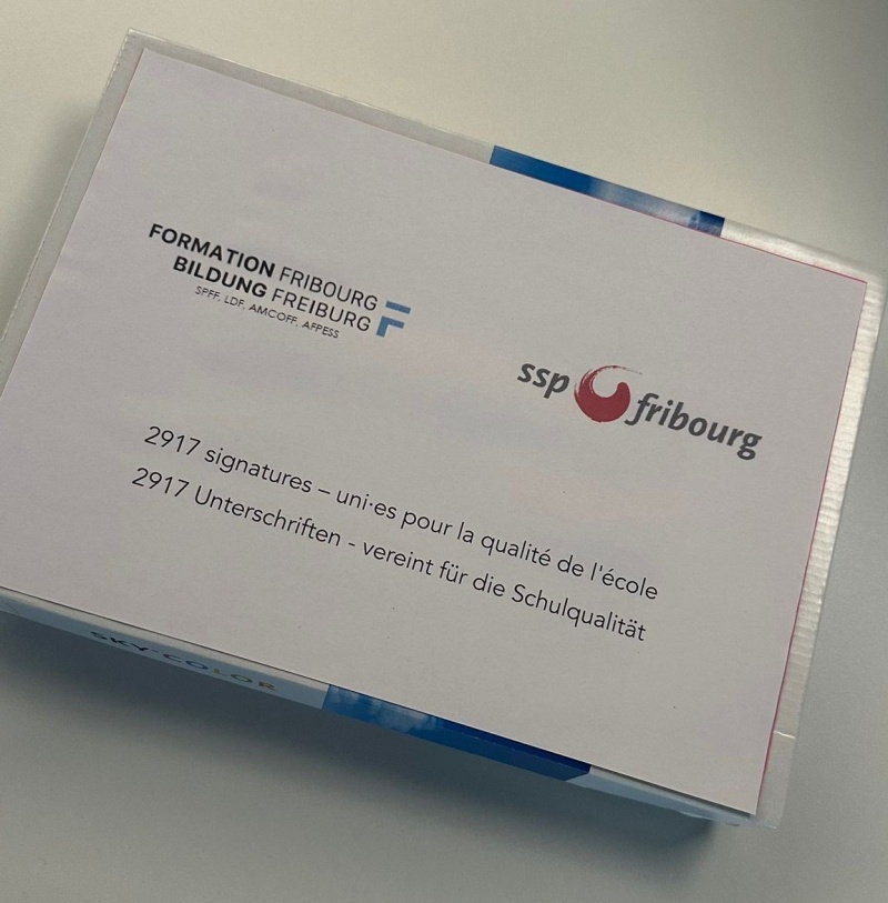 Die Staatskanzlei des Kantons Freiburg nahm heute Vormittag eine Petition der Gewerkschaften von Bildung Freiburg und des Verbands des Personals öffentlicher Dienste (VPOD) entgegen. Es handelt sich um einen Vorschlag zur Verbesserung der Rahmenbedingungen im Bildungswesen, der in vier Anliegen erläutert wird.