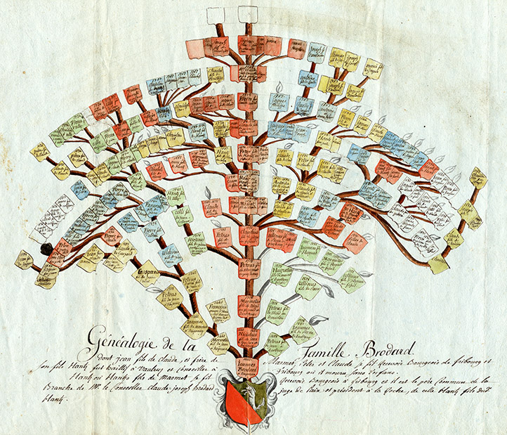 Angaben zur Familie vor 1876 geben die Pfarreiregister. Sie enthalten die Taufen, Heiraten und Todesfälle der Wohnbevölkerung. Von einem grossen Teil von ihnen hat das Staatsarchiv Freiburg Mikrofilme anfertigen lassen. Weder die Geistlichen noch das Archivpersonal können genealogische Nachforschungen anstellen. Der Genealoge muss die Register selber durchsehen, die in Latein verfasst sind und selten ein alphabetisches Inhaltsverzeichnis aufweisen.Unter folgendem Link finden sie die summarische Liste der im Staatsarchiv verwahrten Pfarreiregister. Diese Liste wird laufend ergänzt.