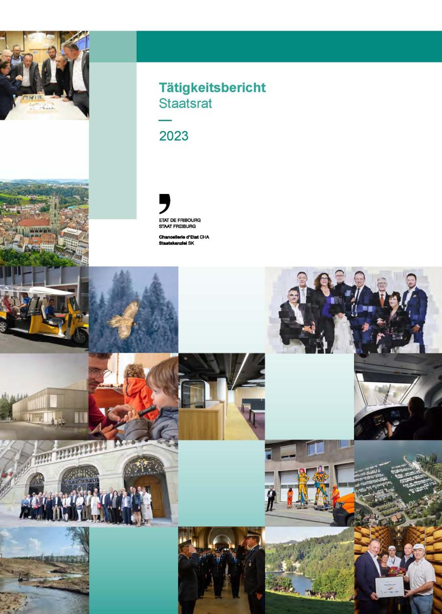 Der Tätigkeitsbericht 2023 des Staatsrats kann ab sofort unter www.fr.ch/sr heruntergeladen werden. Die zweite Ausgabe des neu gestalteten Tätigkeitsberichts bietet auf rund 100 Seiten zusammenfassende Informationen über die Tätigkeit des Staats. Die Umsetzung des Regierungsprogramms kann gezielt nachverfolgt werden. Sie hat auch den Anspruch, die digitale Welt und die Möglichkeiten, welche die Digitalisierung im Allgemeinen und die Website des Staates im Besonderen bieten, besser zu nutzen.