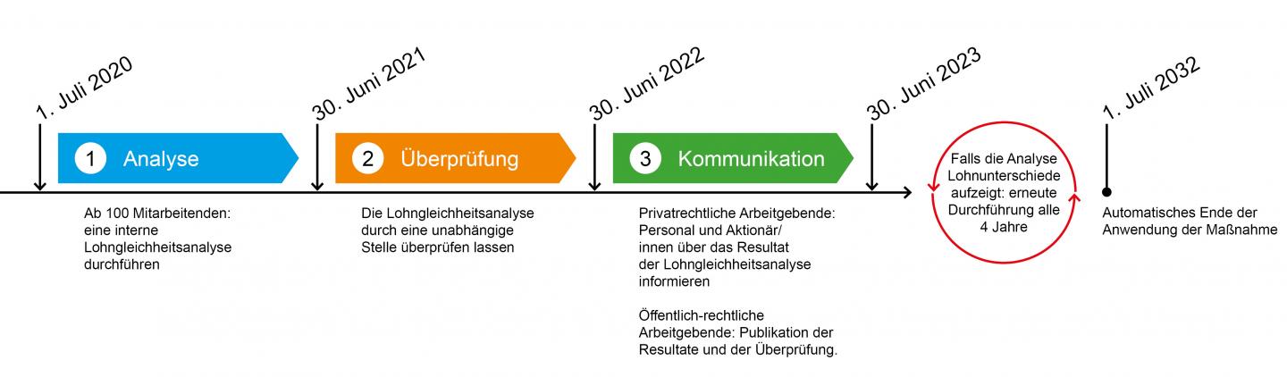 Mit dem revidierten GlG (Gesetz über die Gleichstellung von Frau und Mann ) werden neu alle Arbeitgebenden mit 100 oder mehr Mitarbeitenden dazu verpflichtet, alle vier Jahre eine Lohngleichheitsanalyse durchzuführen und diese von einer unabhängigen Stelle überprüfen zu lassen. Weiter müssen Arbeitnehmende sowie Aktionärinnen und Aktionäre über das Ergebnis der Lohngleichheitsanalyse informiert werden.