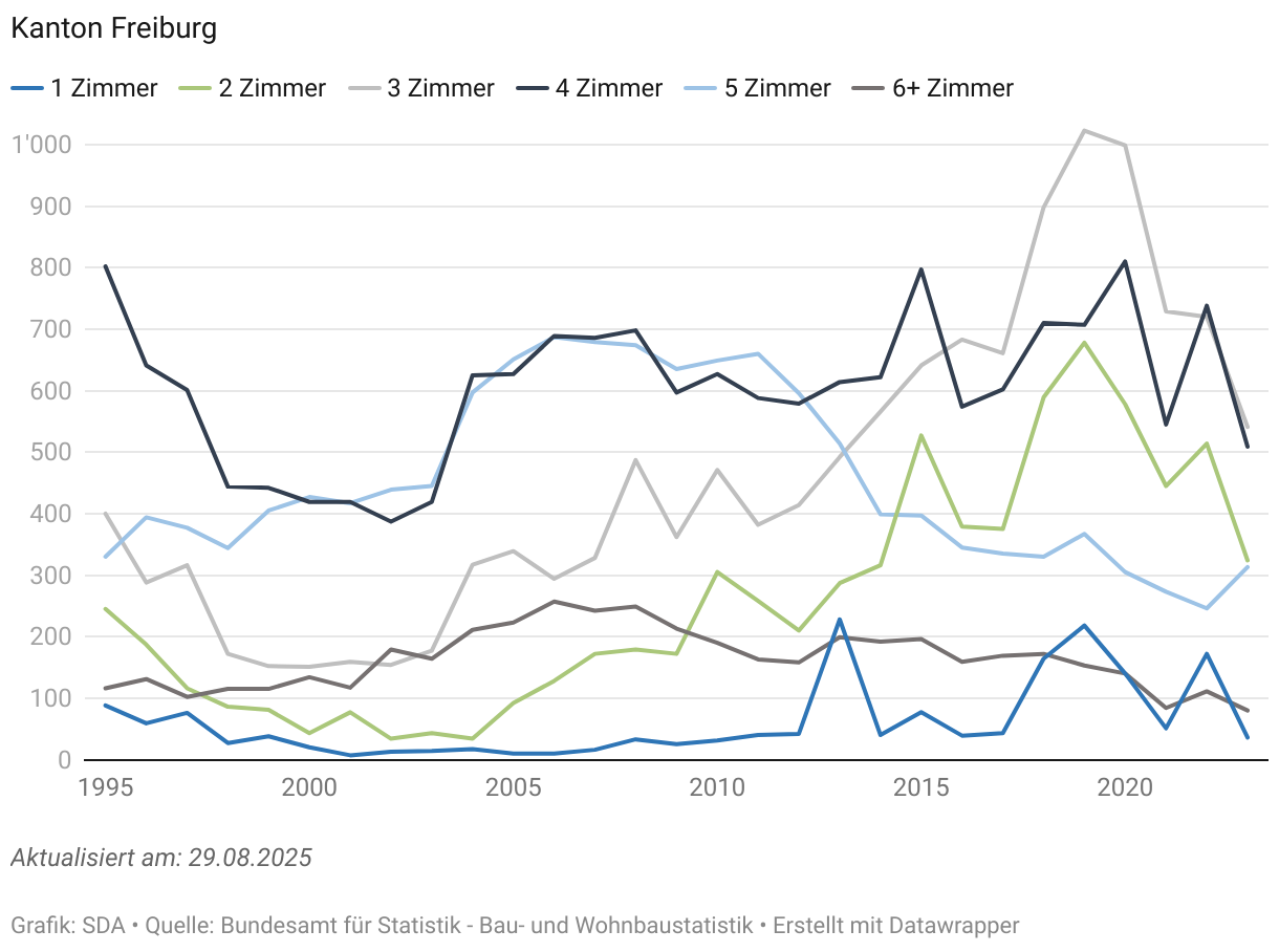 Neue Wohnungen in neu erstellten Gebäuden im Kanton Freiburg 2023