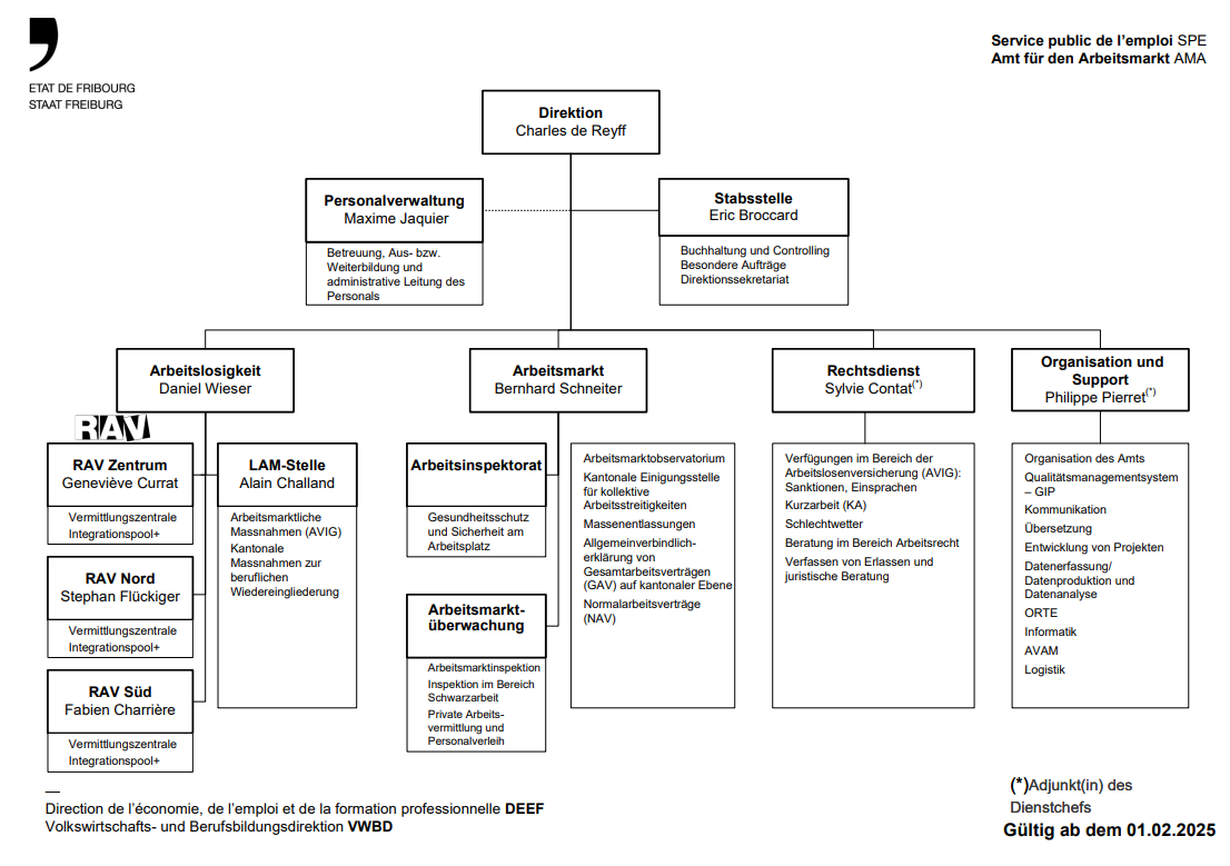 Organigramm des Amts für den Arbeitsmarkt (AMA)